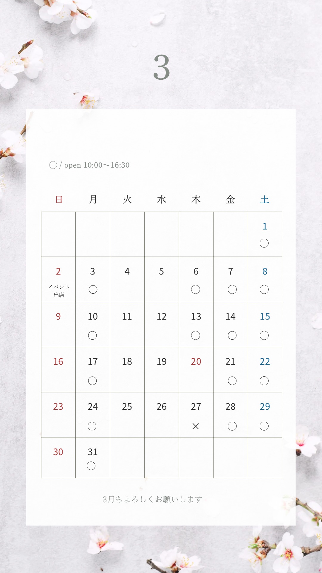 3月の予定のお知らせです。
